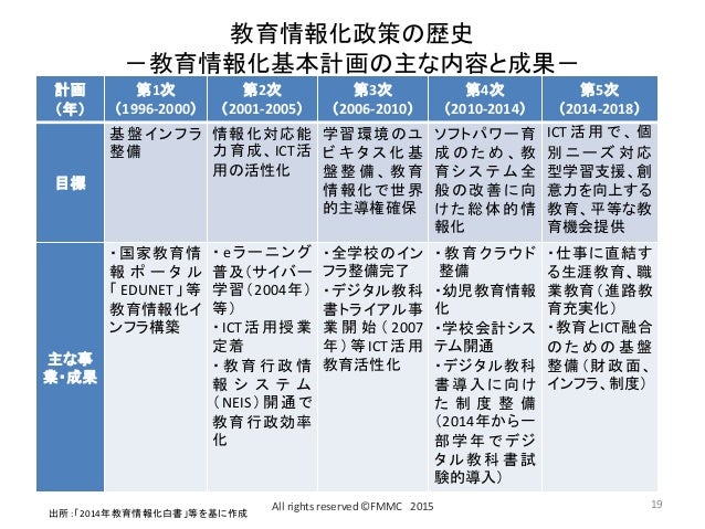 具体的には2020年までの「ICT融合重点投資先」に「教育」が選定され、予算化されている。