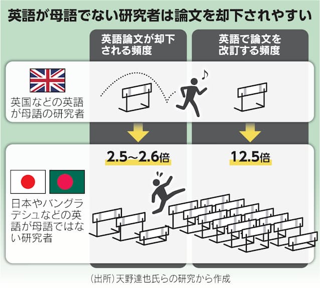 「研究者の母語が英語でないと、論文の出版数が最大で7割も減る「共通語」の利点を享受しつつ、科学の発展を阻む恐れもある言葉の障壁を下げる工夫が求められます。」