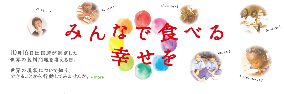 ●食べる、を考える歌「ごはんハンハン」 |「世界食料デー」月間2015 みんなで食べる幸せを http://www.worldfoodday-japan.net/nokomono.php