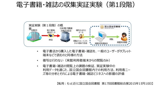 ●国立国会図書館、有償の電子書籍・電子雑誌を保管・閲覧提供する実証実験 http://news.mynavi.jp/news/2015/11/30/499/