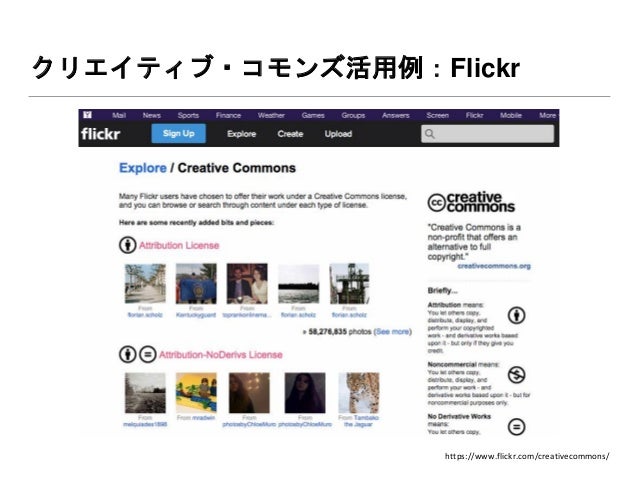 それも、それと意識しないほどに普及している。人々は次のようなサービスを利用するとき、実はクリエイティブ・コモンズ・ライセンスを使っている。それとは気づかないままに。