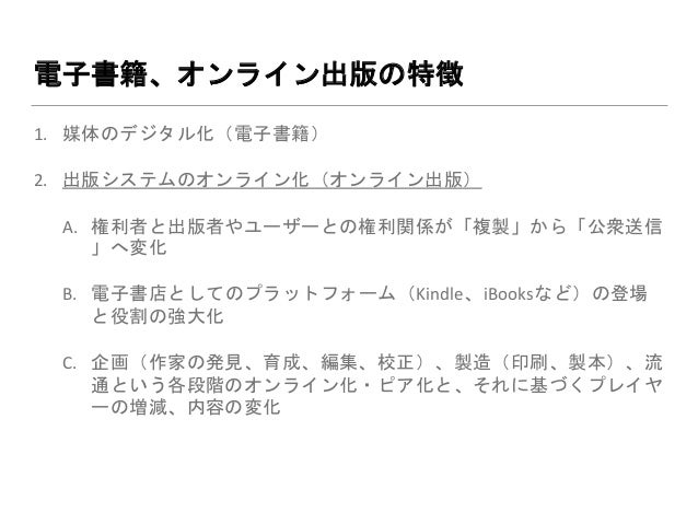 ・これを著作権制度の文脈で表現するなら、「複製」から「公衆送信」へと、出版業界の構造が変わった、ということだ。