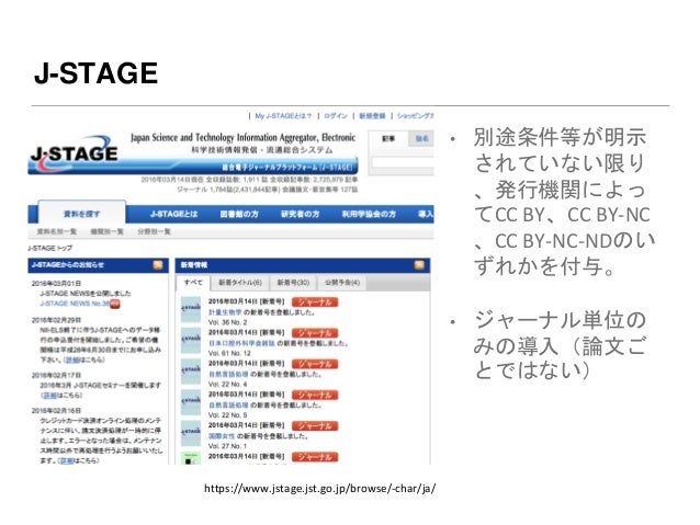 ●オープンアクセスとクリエイティブ・コモンズ採用における注意点開かれた研究成果の利活用のために https://www.jstage.jst.go.jp/article/johokanri/59/7/59_433/_pdf