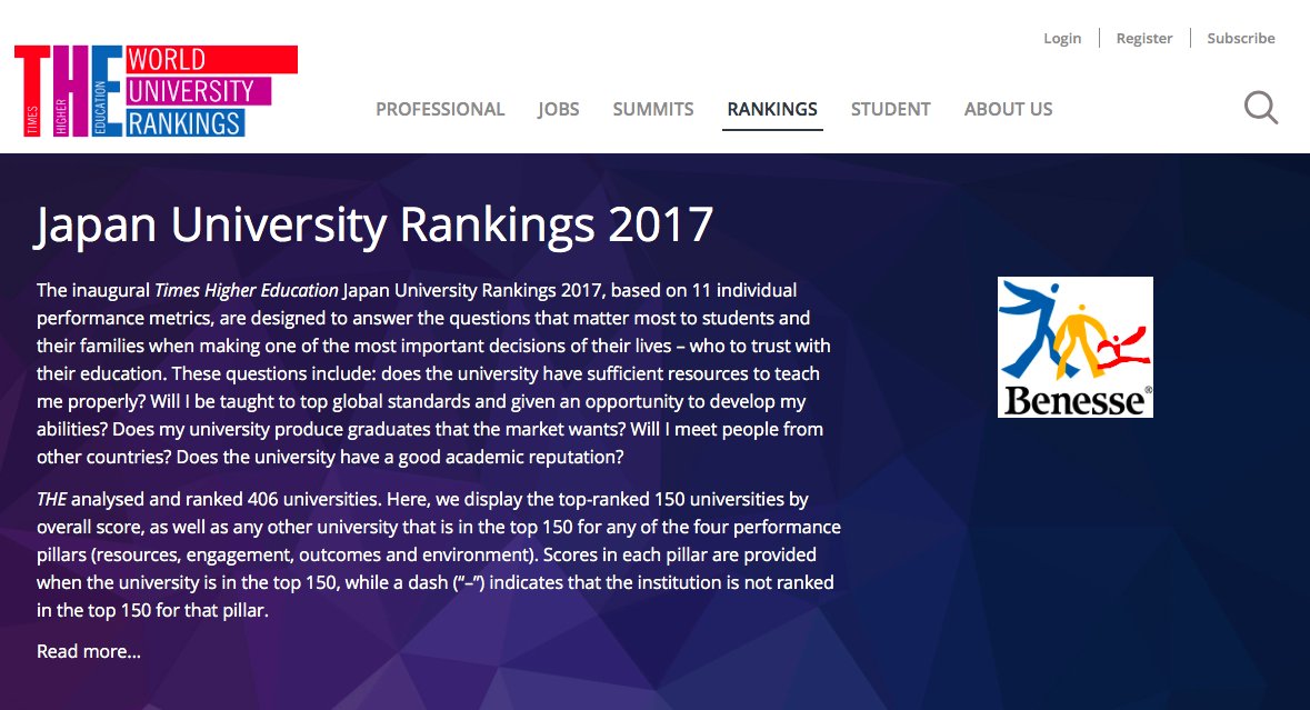 Times Higher Education (THE)は官民含め大学関係者が関心を持ってみているサイト、また「大学ランキング」だが、そこへベネッセの調査結果が掲載れた。