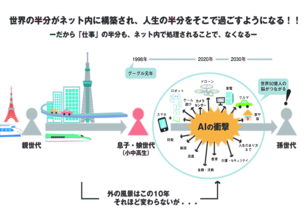 言いたいこと=「ロボットAI社会が進むほど大切になる「基礎的人間力」と「情報編集力」」。