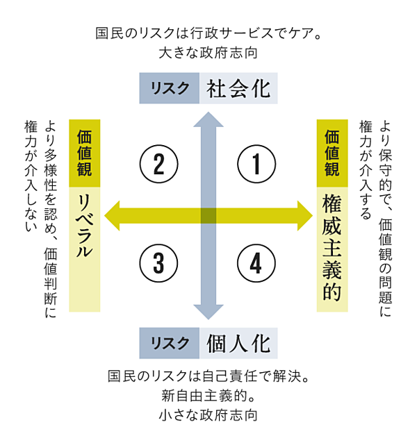 ・中島岳志氏考案の「現代政治のマトリクス:リスクと価値観の四象限」