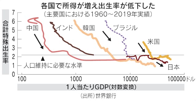 中国は英国の後をたどろうとしたのだが、「流れを変えたのは女性の教育と社会進出が加速したことによる出生率の低下だ。女性1人が生涯に産む子供の数(合計特殊出生率)は17年現在で2.4と、人口が増えなくなる2.1の目前だ。」